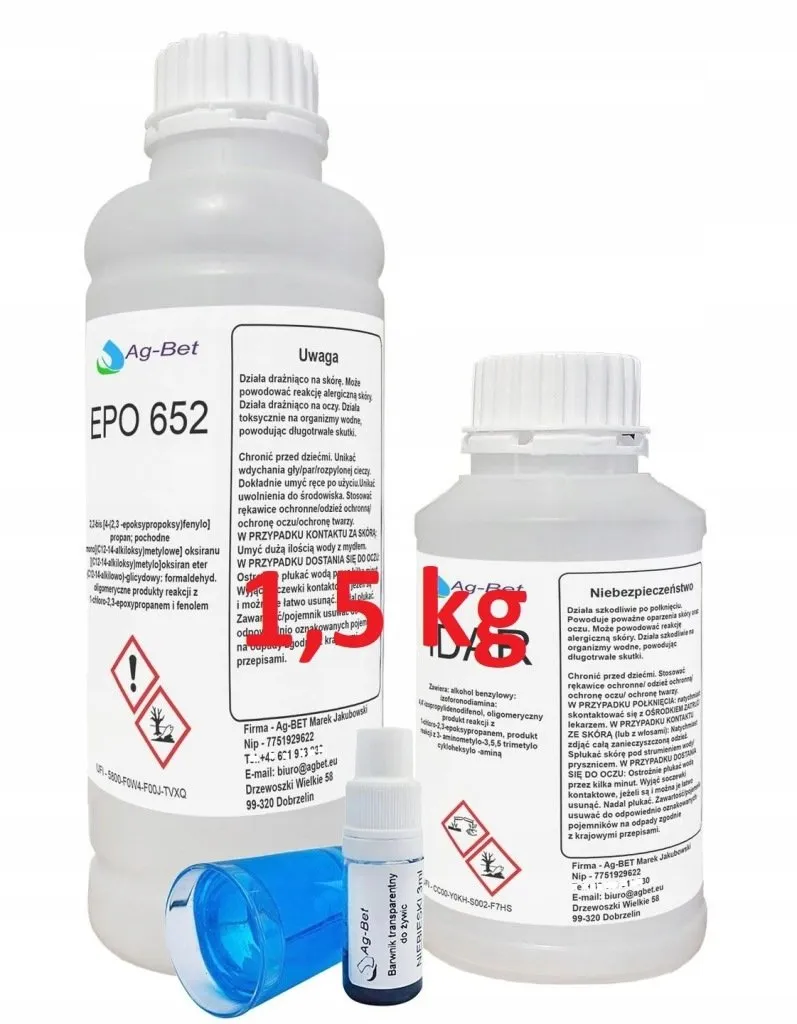 - Inne nazwy: żywica epoksydowa DGEBA, epoksydowy klej termoaktywny, kompozyt epoksydowy do drewna